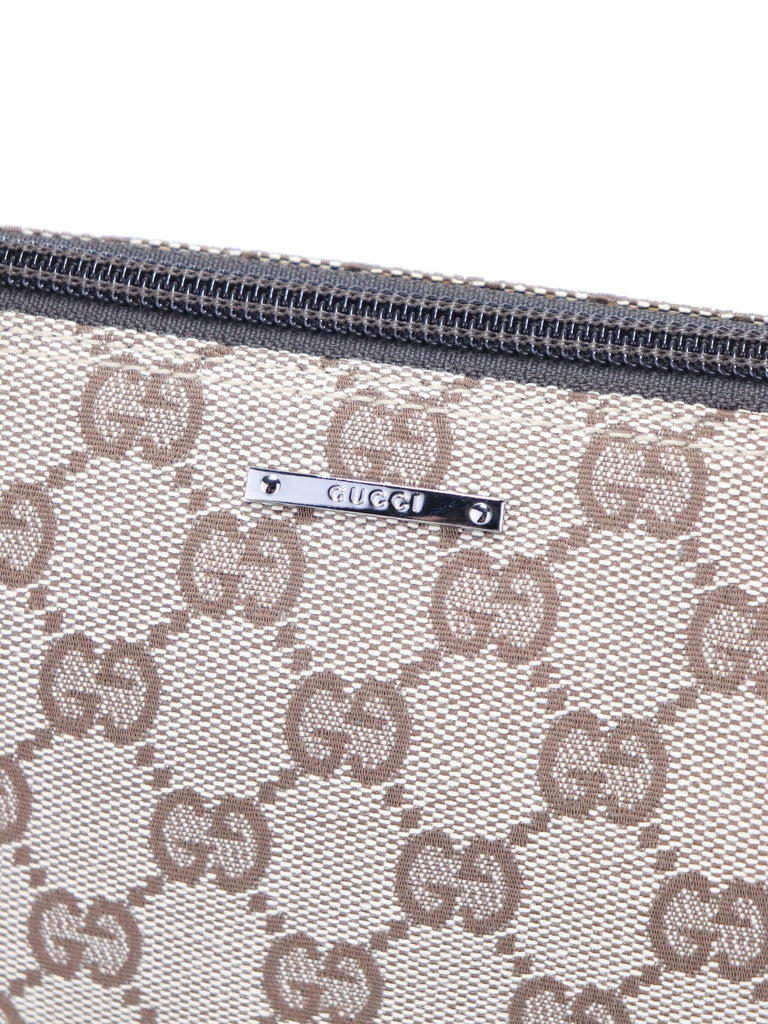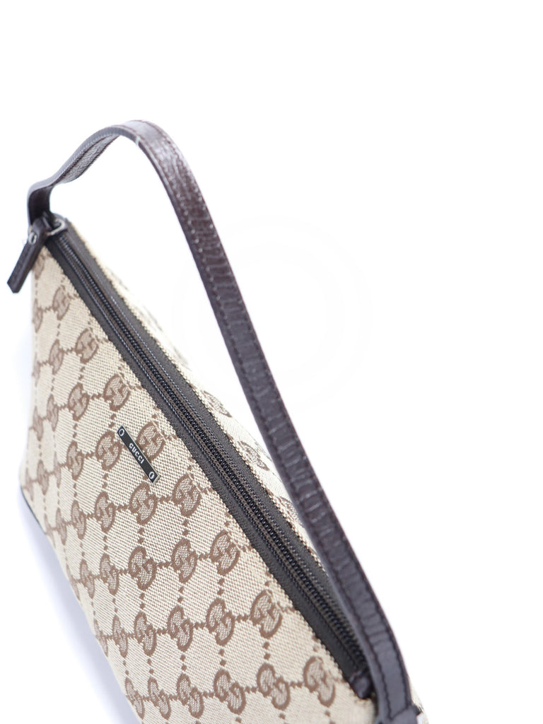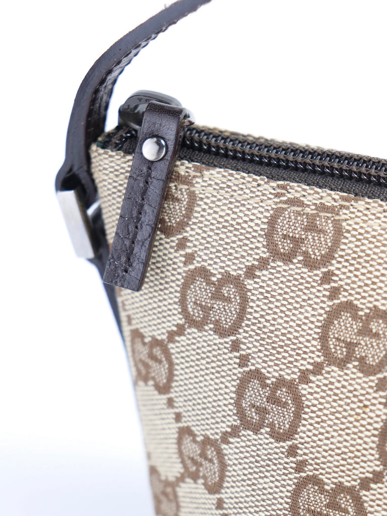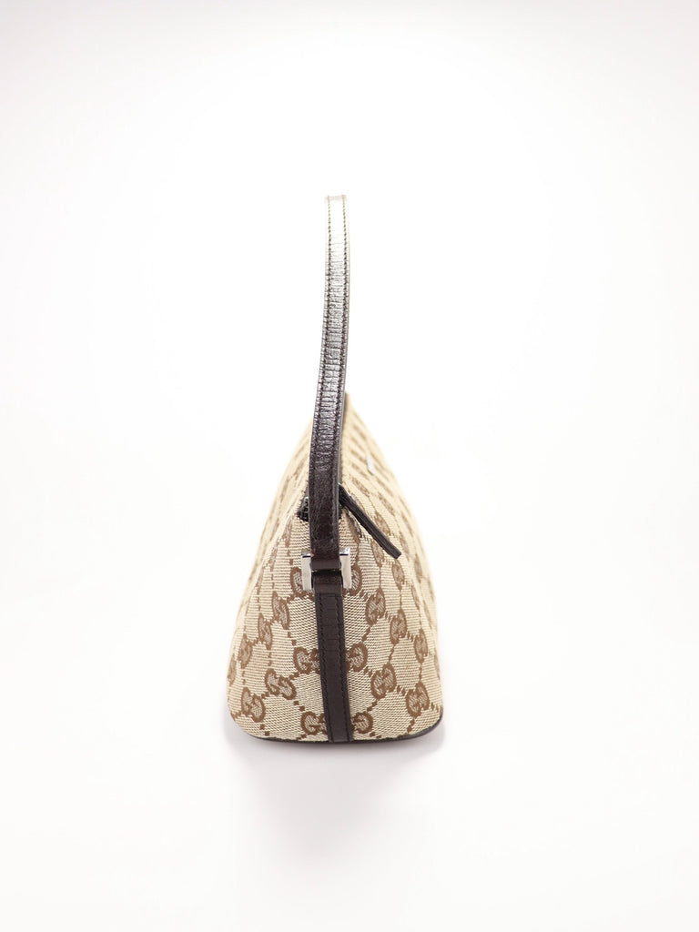 A classic Gucci shoulder bag crafted in the house’s signature GG canvas with dark brown leather trim.